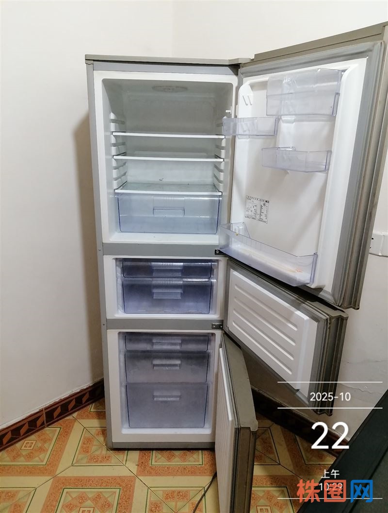 容声三门冰箱,200多升大容量,一级能效,制冷效果好。外观干净整洁,冷藏冷冻分区合理,功能完好无维修